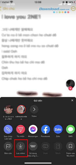 Ngoài ra, người dùng có thể tải xuống video có chứa audio đang thịnh hành trên TikTok bằng cách nhấn vào nút ba chấm, chọn Lưu video.