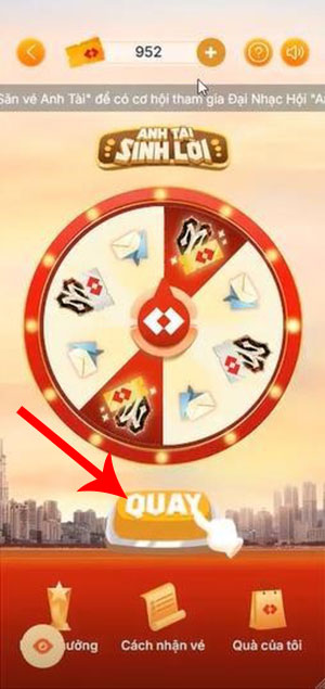 Bước 4: Chương trình quay vé sẽ diễn ra vào thứ 7 và chủ nhật hằng tuần với giao diện vòng quay như ảnh dưới, mọi người cần nhấn nút Quay để bắt đầu.