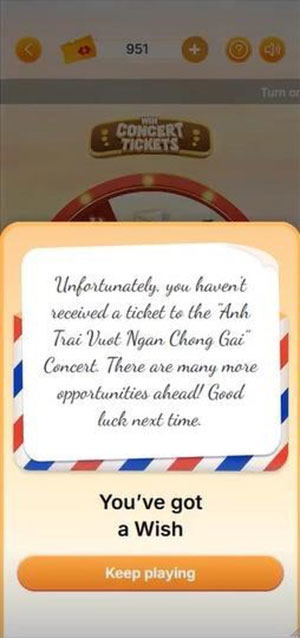Nếu không trúng thưởng, màn hình sẽ hiển thị như sau: