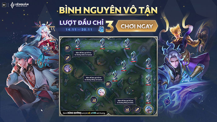 Người chơi chọn 3 trang phục tương ứng với phần thưởng lớn tại 3 đường caesar, đường giữa hoặc đường rồng. Mỗi 1 lượt chơi, game thủ chỉ định đánh vào đường theo mong muốn, có thể tập trung đánh 1 đường hoặc đánh cả 3 đường, nhằm gây từ 1-10 máu.