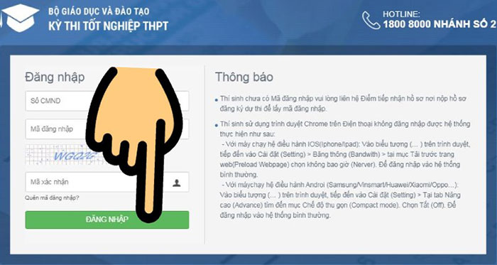 Bước 1: Truy cập hệ thống tuyển sinh của Bộ GD&ĐT và tiến hành đăng nhập vào tài khoản của mình bằng CMND/CCCD.