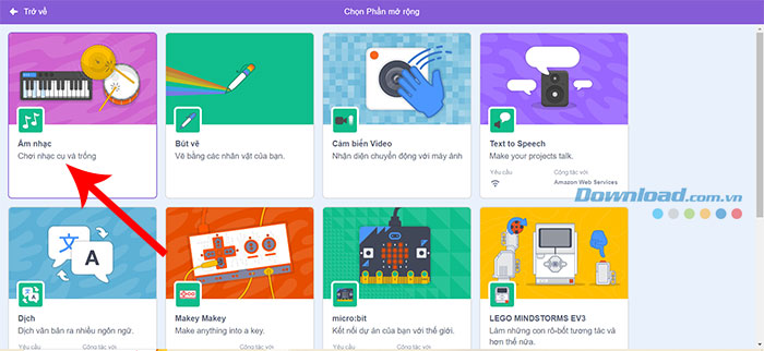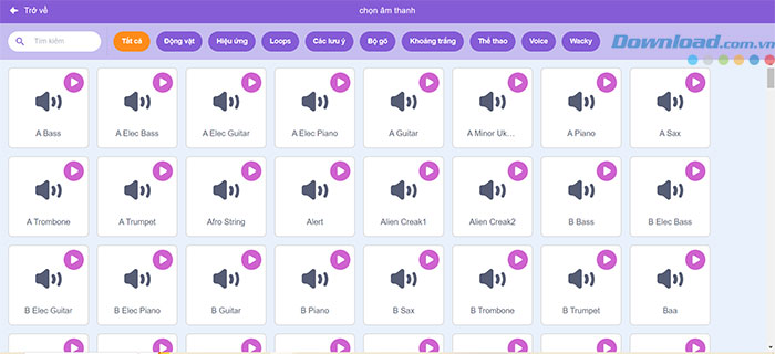 Bây giờ mọi người có một bộ khối kéo thả hoàn toàn mới để sử dụng. Tại đây, người dùng có thể chọn các nhạc cụ gõ khác nhau, từ nhiều loại trống đến chũm chọe.