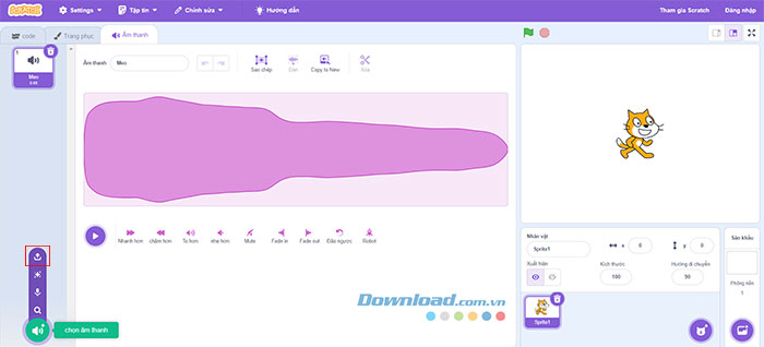 Khi âm thanh đã có trong Scratch, người dùng có nhiều tùy chọn để tùy chỉnh. Mọi người có thể thay đổi tốc độ và âm lượng hoặc thử nghiệm các hiệu ứng như tăng/giảm âm lượng.