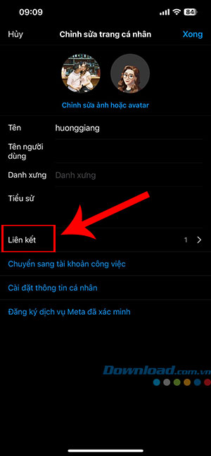 Bước 3: Trên màn hình Chỉnh sửa trang cá nhân, chạm vào Liên kết.