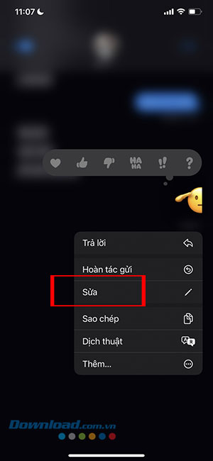 Bước 3: Khi menu pop-up xuất hiện, nhấn vào Sửa để thay đổi nội dung tin nhắn.