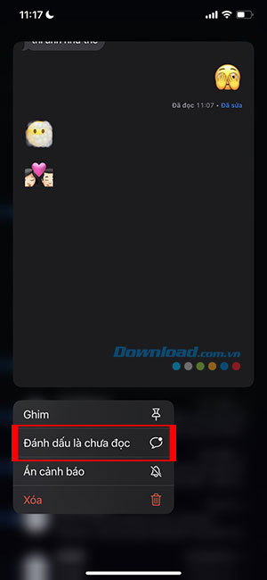 Bước 3: Khi menu pop-up xuất hiện, chạm vào Đánh dấu là chưa đọc.
