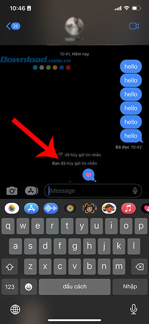 Nếu người nhận đã update iOS 16, một thông báo sẽ xuất hiện cho biết tin nhắn đã được thu hồi và sẽ không biết nội dung là gì, miễn là họ không thấy bản xem trước của tin nhắn gốc được gửi.