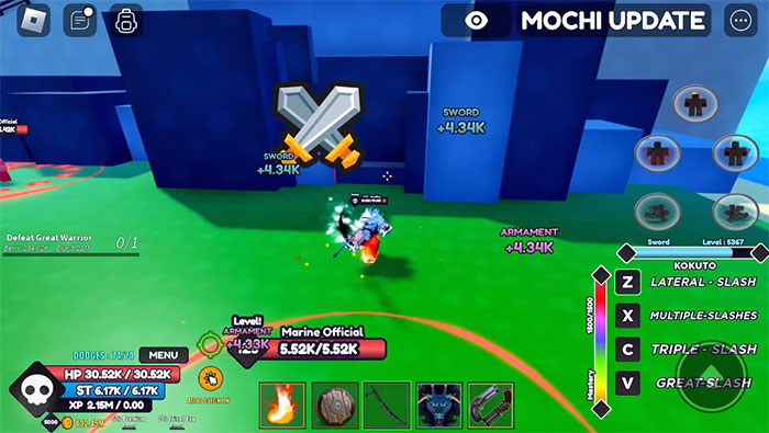 Ngoài ra, khi nâng cấp Haki trong One Fruit Simulator, nó cho phép người chơi sử dụng một số hiệu ứng độc đáo cho mỗi nhân vật, chẳng hạn như Observation Breaks, có thể giúp người chơi né tránh các cuộc tấn công từ kẻ thù.