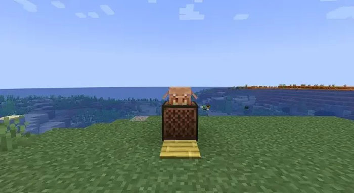 Sau đó, người chơi chỉ cần đạp lên tấm ván để đầu mob phát ra âm thanh tương ứng với mob đó. Đầu của người chơi rõ ràng sẽ không phát ra âm thanh gì, vì nhân vật của người chơi trong Minecraft không nói chuyện.