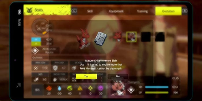 Khi đã có các vật phẩm cần thiết, game thủ chỉ cần đơn giản là chuyển đến menu Stats, chọn một Digimon, cuộn đến tab Evolutuon, rồi chọn một mẫu.