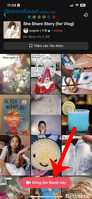Chạm vào âm thanh để phát và nếu muốn sử dụng nó, hãy chạm vào Dùng âm thanh này ở cuối màn hình, hoặc lưu bài hát để sử dụng sau bằng cách chọn Thêm vào mục ưa thích.