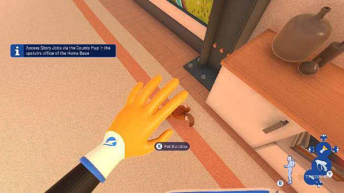 Để vuốt từng chú mèo đang nằm nghỉ trong văn phòng Home Base, người chơi chỉ cần tiến lại gần và nhấn nút tương tác: