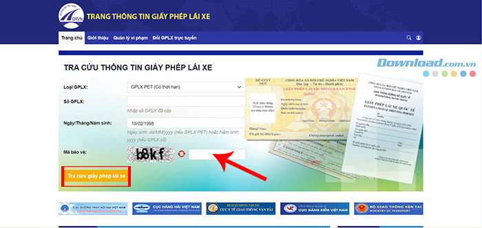 Bước 4: Cuối cùng, nhập Mã bảo vệ được cung cấp và nhấn nút Tra cứu giấy phép lái xe để bắt đầu tra cứu thông tin.