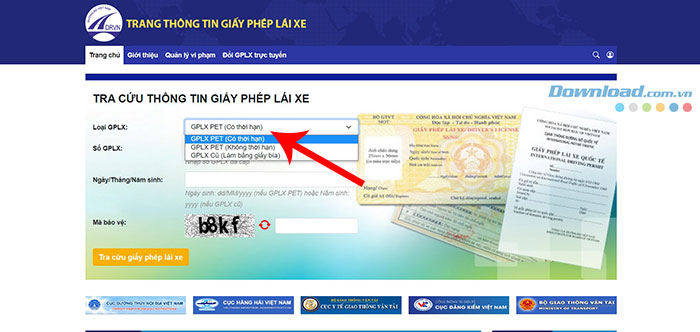 Bước 3: Nhập Số GPLX là dãy số nằm ở trên cùng của thông tin giấy phép bản cứng, tại mục Số/No.
