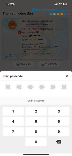 Bước 3: VNeID sẽ yêu cầu mật khẩu để xem mọi thông tin cá nhân, vì vậy, mọi người cần nhập passcode để tiếp tục.