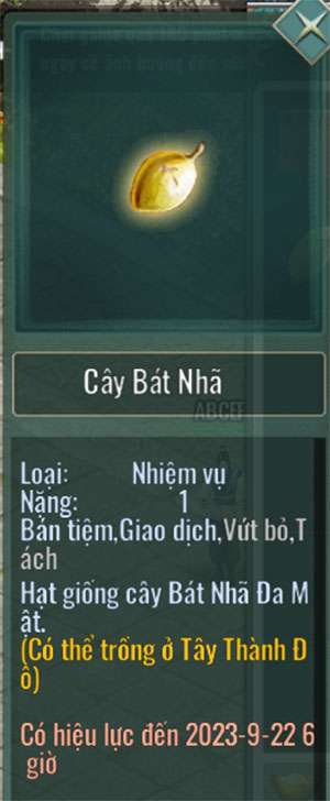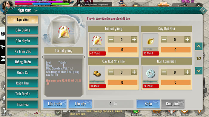 Đây là bước đầu tiên để trồng cây trong Kiếm Hiệp Tình 2 Mobile, có thể thực hiện sau khi game thủ đạt level 10, bằng các hạt giống tại Ngự Các hoặc giao dịch với người chơi khác.