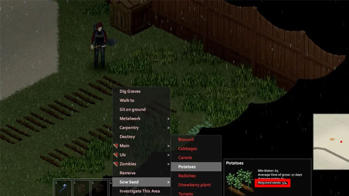 Ban đầu việc trồng trọt có thể không cần thiết trong Project Zomboid. Nếu bắt đầu trong những tháng đầu bị nhiễm bệnh, sẽ có rất nhiều thực phẩm tươi sống xung quanh Knox Country. Ngoài ra, người chơi thể tìm thấy thực phẩm đóng hộp, có thể bảo quản được lâu. Tuy nhiên, sau khi tất cả những thứ đó cạn kiệt, game thủ nên bắt đầu tìm kiếm các lựa chọn mới và đó là lúc trồng trọt phát huy tác dụng.