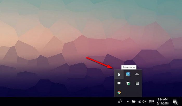 Bước 4: Sau khi được cài đặt, Rainmeter sẽ tự động tải một widget trên màn hình. Để mở cài đặt, mọi người cần nhấp chuột trái vào biểu tượng Rainmeter trong vùng thông báo của Windows trên thanh tác vụ.