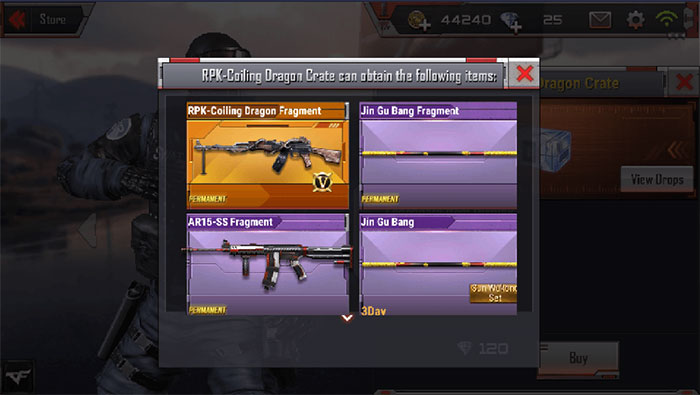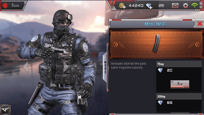 Trong khi nhiều người bị cuốn hút bởi skin đẹp mắt, thì những game thủ chiến thuật tập trung vào trang bị thực sự ảnh hưởng đến gameplay. Người chơi có thể mua vũ khí bằng Gem hoặc Gold. Tuy nhiên, hầu hết vũ khí mua bằng kim cương đều có thời hạn sử dụng. Nói cách khác, bạn không thực sự mua chúng, mà chỉ thuê trong một khoảng thời gian nhất định