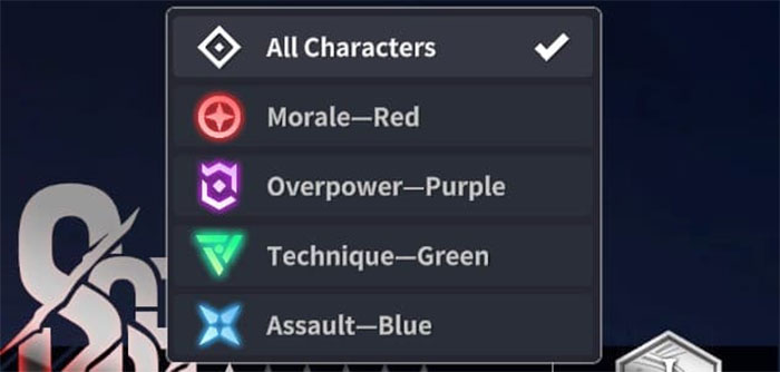Đối với một đội toàn diện, điều quan trọng là phải bao quát được những kiểu nhân vật này. Ví dụ: nếu đang đối mặt với một nhóm kẻ thù yếu với các nhân vật Technique, việc có một nhân vật thuộc loại này trong đội có thể là chìa khóa để chiến thắng.