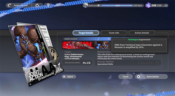Ví dụ: nếu đang chống lại những kẻ thù nhận nhiều sát thương hơn trước các đòn tấn công thuộc loại Technique, hãy mang theo các nhân vật có bộ kỹ năng thuộc loại Technique để vượt qua hàng phòng thủ một cách hiệu quả. Điều chỉnh đội của mình để khai thác điểm yếu của kẻ thù là điều cần thiết để thành công trong các nhiệm vụ đầy thử thách.