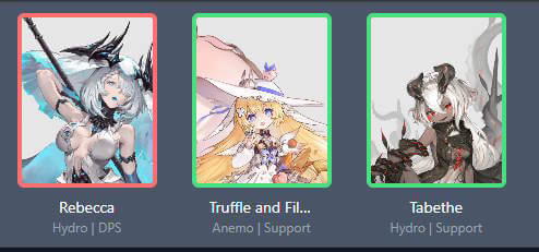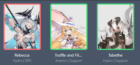 Đội hình này xoay quanh Rebecca, hiện là DPS nguyên tố Hydro duy nhất.