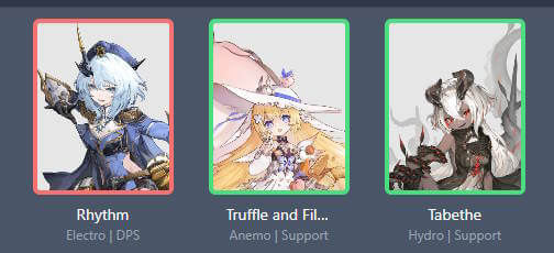 Truffle và Filbert: Hồi máu, tăng sát thương, và thêm +15% hiệu ứng Malaise, giúp DPS Anemo mạnh hơn.