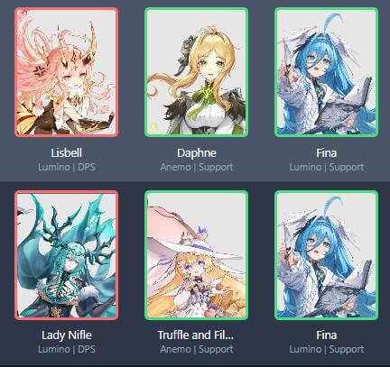 Daphne: Hồi máu, hỗ trợ và đặc biệt là tăng 40% Tỷ lệ chí mạng cho toàn đội (bất kể nguyên tố). Lưu ý: Sát thương kỹ năng không thể chí mạng, nên buff này hiệu quả hơn với đội dựa vào đòn đánh.