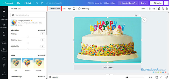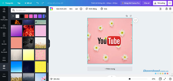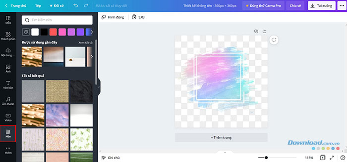 Sau khi chọn xong nền, hãy tải hình ảnh xuống bằng nút Tải xuống ở góc trên cùng bên phải. Người dùng cũng có thể chia sẻ ảnh của mình trực tiếp từ Canva với tài khoản Facebook, Instagram và Google Drive.