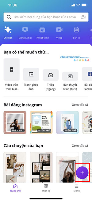 Bước 1: Nhấn vào ô tải về Canva cho điện thoại dưới đây, sau đó khởi chạy ứng dụng.
