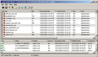 Trong danh sách hiển thị, bạn có thể sắp xếp, tìm kiếm, xóa các giá trị mà bạn muốn, cũng như có thể xuất ra 1 file text để đọc hoặc copy vào clipboard. Thậm chí bạn cũng có thể thay đổi giá trị của nó, và xuất nó thành cookies của các trình duyệt dòng Netscape/Mozilla (như Firefox chẳng hạn). Hơn nữa, nó còn cho phép bạn khóa các trang web bằng cách sử dụng cookies qua cơ chế của Internet Explorer 6.0.