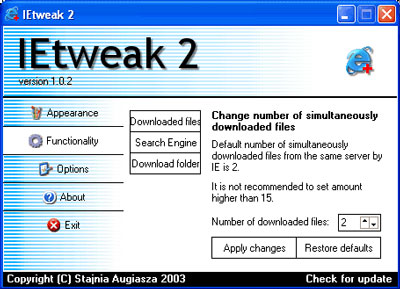 IETweak 2 của Stajnia Augiasza là chương trình mang đến nhiều tính năng mở rộng cho Internet Explorer của Microsoft để nó có thể phục vụ cho công việc của bạn tốt hơn.