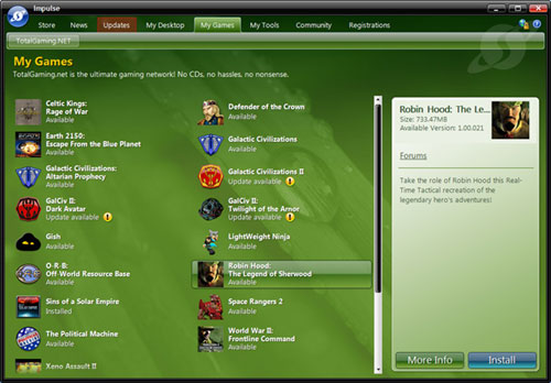 Impulse cho phép người dùng nhanh chóng và dễ dàng tìm thấy game cũng như phần mềm ưa thích và download chúng tự động vào máy tính của họ. Phần mềm hỗ trợ tất cả các kiểu phần mềm máy tính, gồm có các game, ứng dụng và tiện ích. Impulse chính là một nền tảng phân phối số cho phép bạn nhanh chóng và dễ dàng tìm kiếm game hoặc ứng dụng ưa thích của mình và download chúng tự động về máy tính.