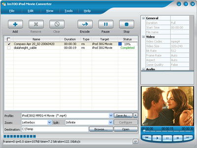 ImTOO iPod Movie Converter được đánh giá là một trong những chương trình convert file video dành cho iPod thuộc vào hàng tốt nhất. Ngoài khả năng chuyển đổi định dạng file mà vẫn giữ nguyên chất lượng nhạc và hình thì chương trình còn cho phép bạn có thể xem được các file nằm trên iPod. ImTOO iPod Movie Converter hỗ trợ các định dạng như AVI, MPEG, WMV, MOV, MP4, RM, RMVB, DivX, ASF, VOB, 3GP.