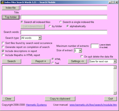 Phần mềm này được dùng để đánh chỉ số - và sau đó tìm kiếm nhanh chóng – các file dữ liệu, file HTML, file XML hoặc các loại file phổ biến trong các folder và các folder phụ trên một ổ cứng, CD-ROM, bộ nhớ gắn ngoài. Chú ý rằng phần mềm này không hoạt động với fiel .doc của MS-Word hoặc file .pdf của Adobe. Chương trình này được sử dụng để đánh chỉ số và tìm kiếm nhanh chóng các file dữ liệu trên máy tính của bạn hoặc Cd-ROM.
