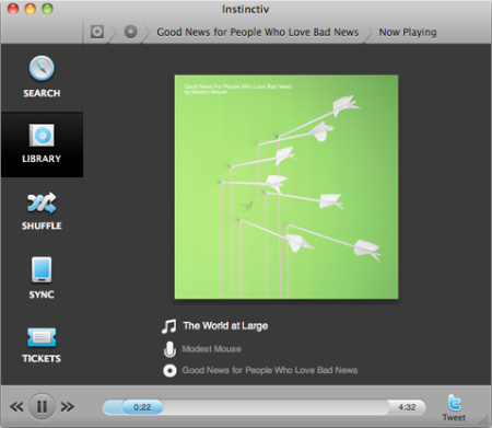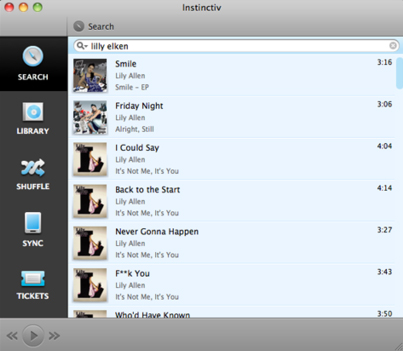 Với tên gọi Instinctiv Music Player nó giống như tên gọi của một loại máy nghe nhạc đa phương tiện. Tuy nhiên Instinctiv Music Player còn có thể làm được nhiều hơn thế với các chức năng cao cấp mà rất nhiều các công cụ có cùng chức năng hoạt động trên MAC không có được.