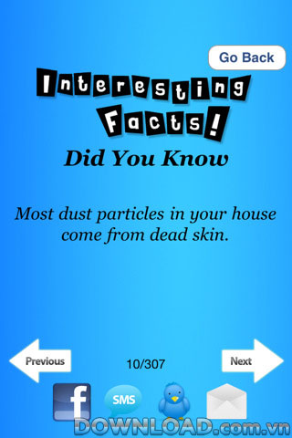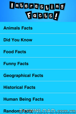 Mở rộng vốn kiến thức với hàng ngàn dữ liệu thông tin hấp dẫn trên iPhone/iPad bằng phần mềm Interesting Facts for iOS.