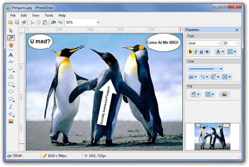 iPhotoDraw là phần mềm cho phép bạn thêm văn bản mô tả, hộp chú thích (bong bóng thoại), kích thước, hình ảnh chi tiết và các đối tượng chú thích khác vào hình ảnh mà không làm hỏng ảnh gốc.