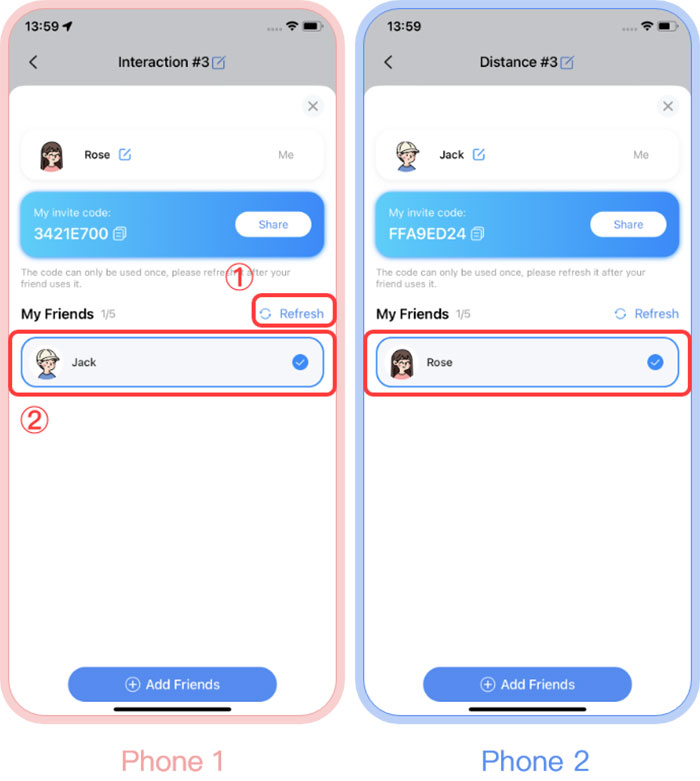 Sau khi thêm bạn bè thành công, 2 người có thể nhìn thấy nhau trong phần My Friends. Nếu không thấy tên của bạn bè/người yêu trong danh sách, hãy chạm vào Refresh để làm mới lại.