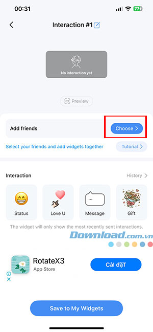 Bước 5: Chọn cùng 1 loại widget và chạm để chọn bạn bè/người yêu sẽ cùng sử dụng widget tương tác này với mình. Tiếp tục, nhấn Save to My Widgets.