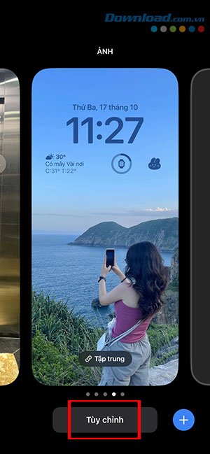 Bước 6: Mở màn hình khóa iPhone, nhấn giữ vào màn hình và chọn Tùy chỉnh để bắt đầu thêm widget.