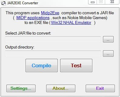 Tại giao diện của JAR2EXE, bạn nhấp vào nút ba chấm (…) dưới mục Select JAR file to convert để chỉ đường dẫn đến nơi chứa tập tin JAR muốn chuyển đổi và nhấp vào dấu 3 chấm dưới mục Output directory để chỉ đường dẫn đến nơi chứa tập tin EXE sau khi chuyển đổi. Cuối cùng nhấp vào nút Compile để tiến hành thực hiện chuyển đổi.