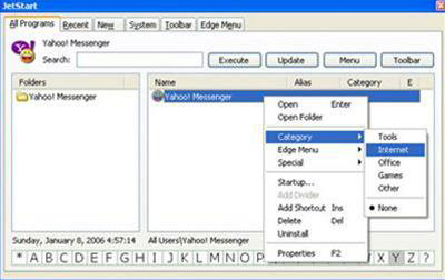 Ví dụ: Click vào chữ Y -> click chuột phải vào ứng dụng “Yahoo Messenger” vừa hiện ra -> chọn “Category” -> sau đó chọn đề mục “Internet” là phù hợp.