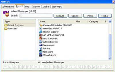 4. Liệt kê toàn bộ các ứng dụng vừa được sử dụng: Nhấn vào thẻ “Recent” để JetStart liệt kê ra cho bạn danh sách khoảng 15 ứng dụng mà bạn sử dụng gần nhất. Tính năng này sẽ giúp bạn kích hoạt cực nhanh hàng loạt các ứng dụng quen thuộc mà không cần phải “rị mọ” trong Programs Files hoặc đem biểu tượng ra làm xấu đi màn hình nền.