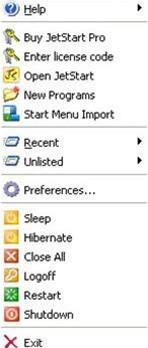 Sau đây là các tính năng đặc thù đã đưa JetStart lên tầm “cách mạng” so với Programs Files của Windows. Bạn click chuột phải vào biểu tượng và chọn “Open JetStart” để mở ra giao diện chính của JetStart nhằm sử dụng các chức năng độc đáo sau: