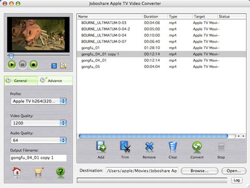 Joboshare Apple TV Video Converter for Mac có các lựa chọn cho phép bạn chuyển đổi nhiều file trong cùng một lúc, chỉnh sửa độ dài của file, cài đặt cho video và audio, xem trước trước khi chuyển đổi, chuyển đổi theo nhóm,...