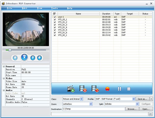 Joboshare FLV Converter tạo các file FLV và SWF để bạn có thể đăng tải và truyền trên Web. Bạn có thể tạo các file này với chất lượng video cao, tỷ lệ khung, kích cỡ, khoảng thời gian và chất lượng.