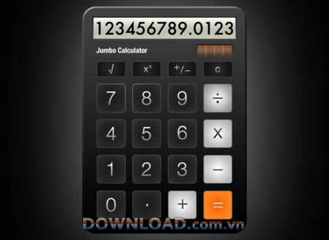 Jumbo Calculator tích hợp đầy đủ các tính năng cơ bản của một chiếc máy tính thông thường như: cộng, trừ, nhân, chia, bình phương, căn bậc hai.