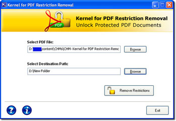 Kernel for PDF Restriction Removal là ứng dụng được thiết kế để loại bỏ các hạn chế được áp dụng trên tập tin PDF. Công cụ hiệu quả này là đủ để loại bỏ các hạn chế từ các tập tin PDF được bảo vệ, để cho phép người dùng thực hiện các hành động toàn diện bao gồm chỉnh sửa, sao chép, in, trích xuất dữ liệu.
