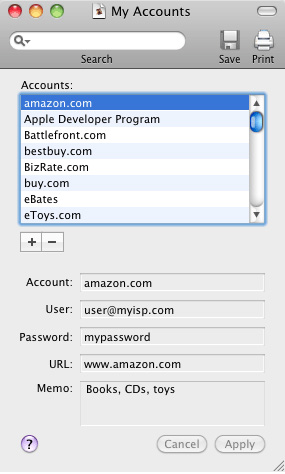 Key Holder là một ứng dụng lưu trữ mật khẩu. Đối với mỗi tài khoản, tên tài khoản, người dùng, mật khẩu, địa chỉ URL Internet, và các mục ghi chú khác đều có thể lưu trữ được. Một menu lệnh cho phép bạn vào trực tiếp URL tài khoản bằng cách tự động chạy trình duyệt web, email hoặc các ứng dụng Internet khác.